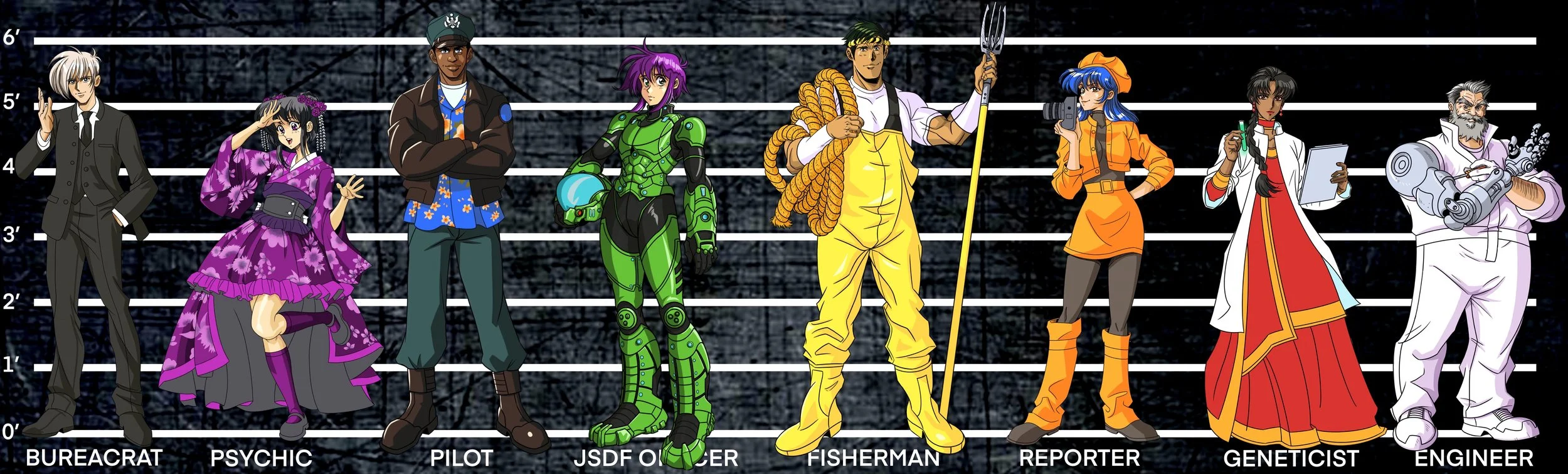 Choose Your Hero: Play as a Bureaucrat, Fisherman, Engineer, Pilot, Reporter, Geneticist, JSDF Officer, Psychic, Idol, or Chemist. Each role brings unique skills to the fight!
